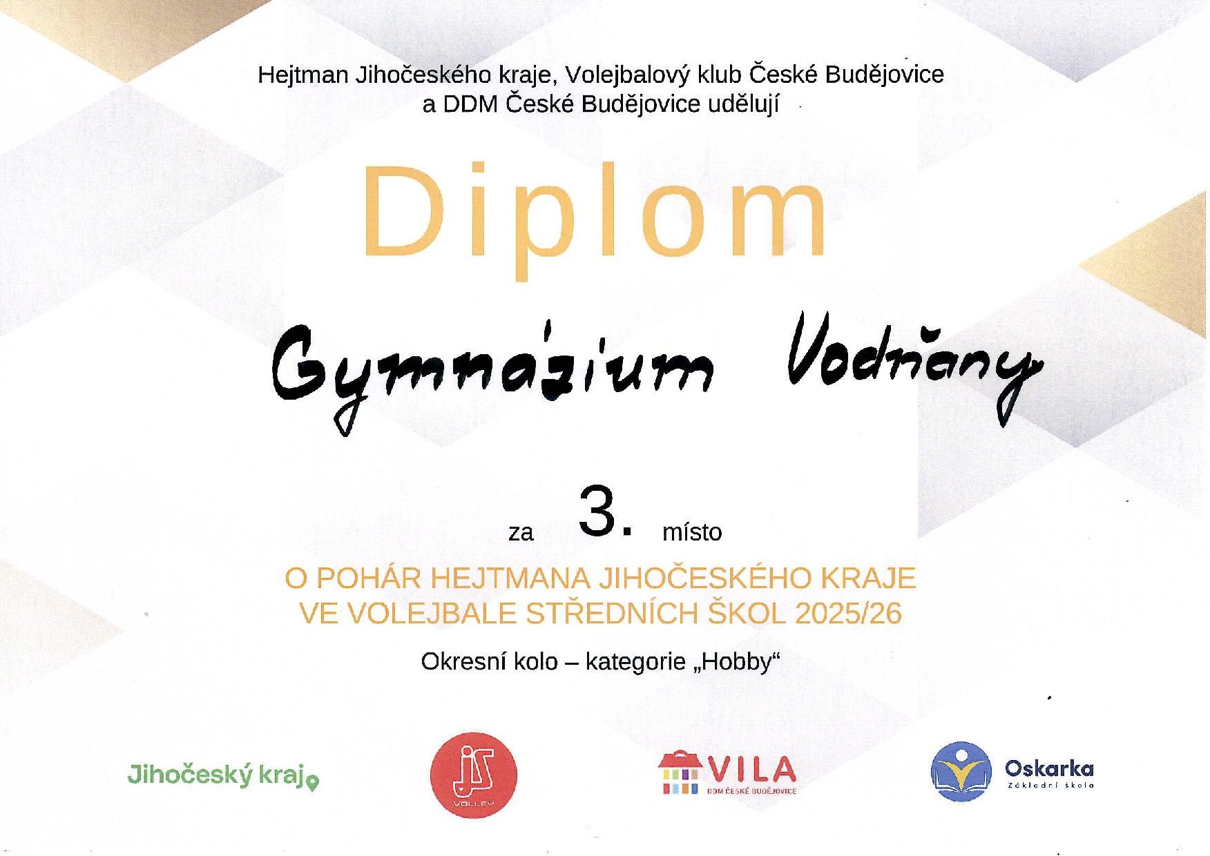3. místo – Okresní kolo O pohár hejtmana