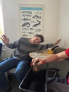 Součástí teoretické přednášky byla i praktická ukázka živých raků. Mohli jsme si je i zkusit chytit a prozkoumat. Řekl bych, že tohle byla velmi úspěšná část přednášky, doopravdy si na raka sáhnout a vyzkoušet, jestli stisk račích je doopravdy tak silný, jak se říká :).